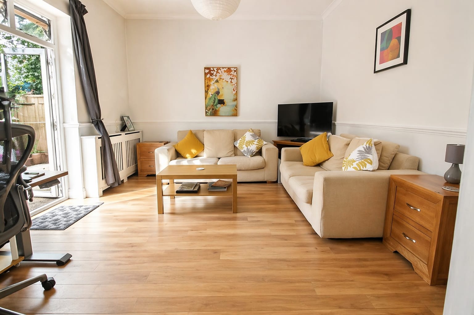 Beautifully presented one-bedroom ground floor Victorian conversion offering bright, spacious living, a private sun terrace, off-road parking, and excellent commuter links to London.